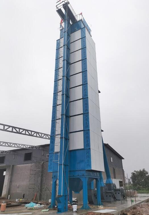 糧食烘干塔專門用來(lái)烘干玉米、小麥、大豆、谷物等糧食作物的專門烘干設(shè)備,采用較低的介質(zhì)溫度(風(fēng)溫),DHG稻谷干燥機(jī)氣流的輸入風(fēng)溫≤75℃,使稻谷實(shí)際接觸的溫度只有35-38℃,確保烘后稻谷的爆腰度<2%。因輸入風(fēng)溫較低,如不增大輸入風(fēng)量肯定出現(xiàn)熱工作的熱能大大降低而干燥機(jī)的產(chǎn)量也隨之降低的現(xiàn)象,所以需要輸入干燥塔內(nèi)較大風(fēng)量,方可解決這一矛盾。一般稻谷干燥機(jī)配置的送風(fēng)機(jī)風(fēng)量是玉米干燥塔的2.5倍以上。風(fēng)量為每1000kg稻谷0.5-0.7m3/s。干燥速率一般應(yīng)控制在1.5%以下,即每小時(shí)降水率≤1.5%。內(nèi)部結(jié)構(gòu)增加不送熱風(fēng)的工作段(也可輸入少量冷風(fēng)),通過相鄰干燥段較高溫度的熱傳導(dǎo)進(jìn)行熱工作,這一過程稻谷也在緩慢降水。此時(shí)稻谷實(shí)際接觸到的溫度僅為20-25度